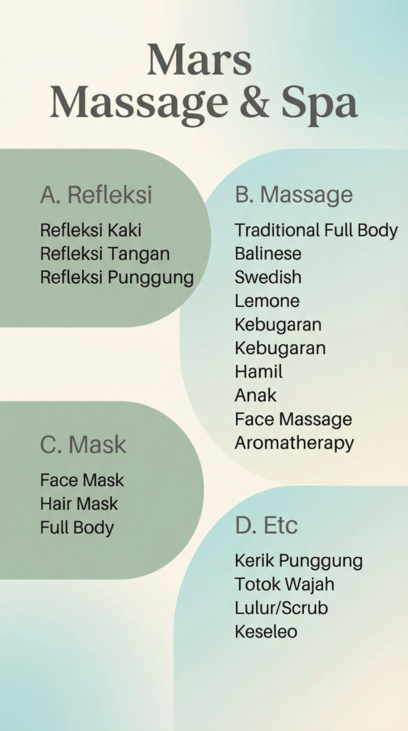 Snapshots of relaxation moments at Mars Massage & Spa in Bogor.